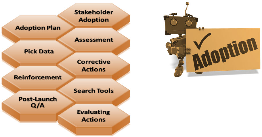 - A predictive model based on real-time stakeholder data can monitor and analyze the progress of each segment’s adoption against post-go live goals. We would have a proactive and intelligent assessment of all activities, 24/7, 365 days/year.